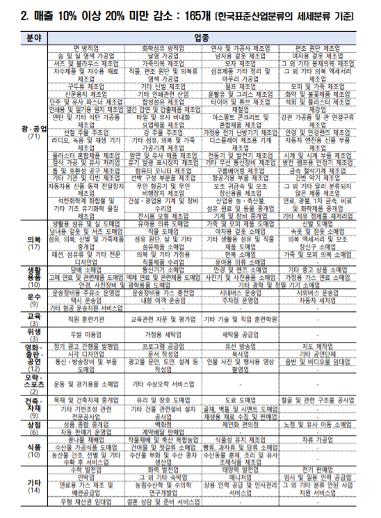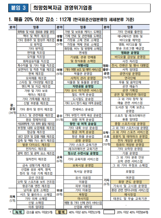 - 경영위기업종이면서 매출 감소가 확인되는 사업체