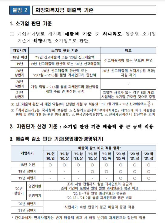 - 중기부 보유 지원대상 DB에 미포함된 경우 매출액 등 지원 요건 충족 여부를 국세청 자료로 검토한 후 지급 여부 결정