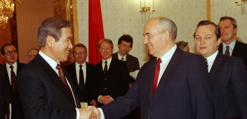 1988년 노태우 대통령은 서구 중심 자유진형 국가 위주의 외교관계에서 벗어나 당시 냉전으로 거리를 두고 있던 공산진영 국가들과의 관계를 개선하기 위해 노력했다. 당시 개혁, 개방의 흐름 속에서 1990년에는 소련 그리고 1992년에는 중국과 수교하여 체제경쟁 중이던 북한과 이미 벌어진 경제력은 물론이고 국제관계에서도 일방적인 우위를 점할 수 있게 되었다.