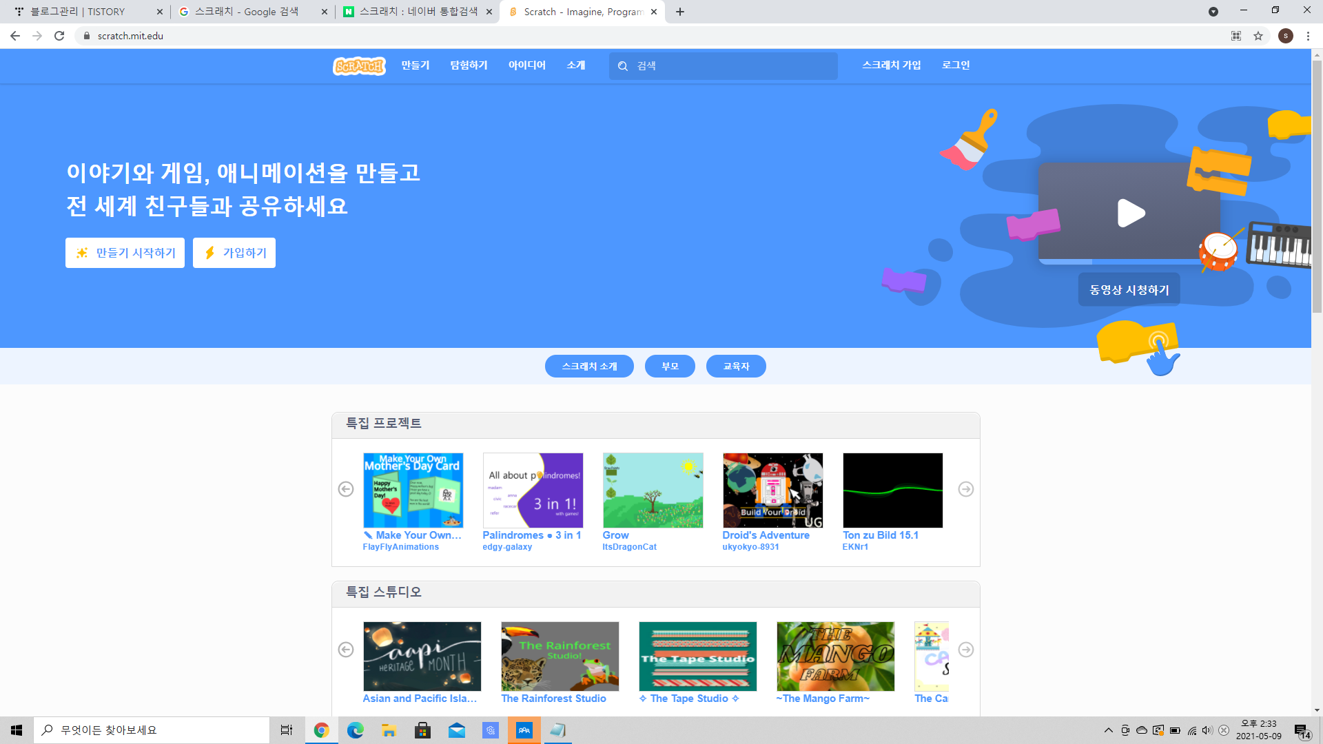 오늘은 스크래치 회원가입을 해보겠습니다.