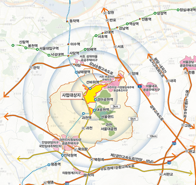 경기도 과천시 과천동, 주암동, 막계동 일원 |