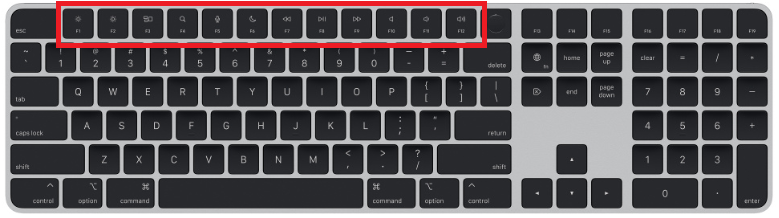일반적으로 "Function keys"로 알려진 함수키는 사용 중인 소프트웨어나 응용 프로그램에 따라 다양한 기능을 갖는 키보드 상단에 위치한 키의 집합이다. 이들은 일반적으로 F1, F2, F3 등으로 F12까지 레이블이 지정된다. 다음은 기능 키와 관련된 몇 가지 일반적인 기능이다: