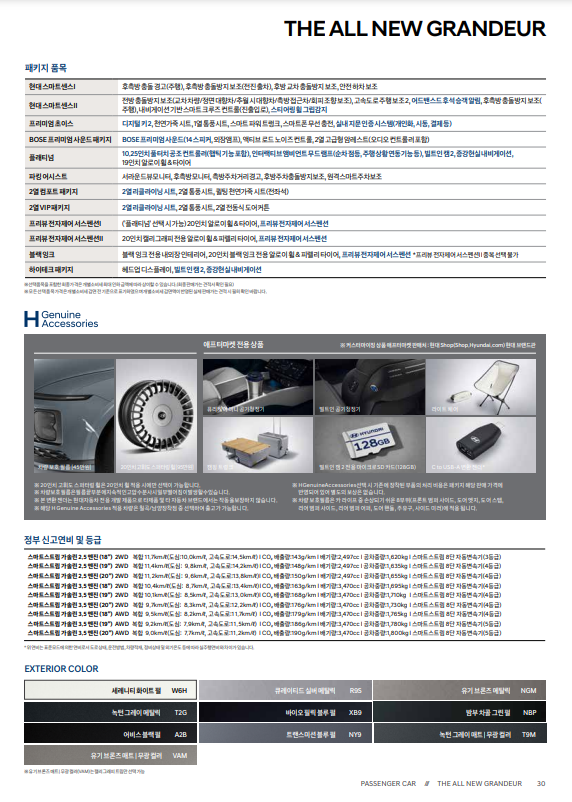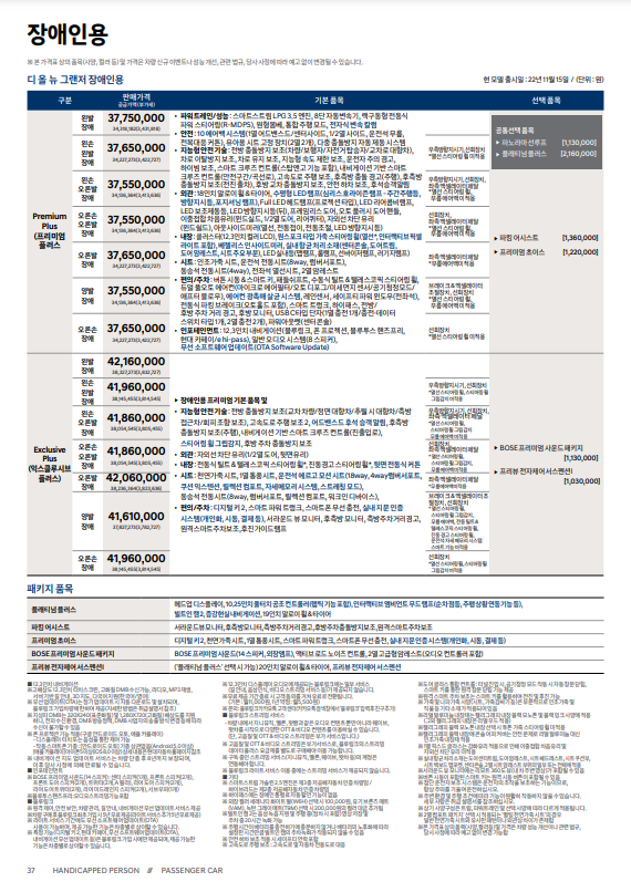 | 트렁크 용량 | 320L(LPG) 480L(가솔린,하이브리드) |