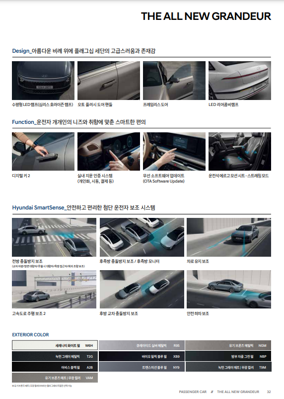 그랜저는 현대자동차를 대표하는 차종이면서 최상위권 판매량을 유지하는 준대형 세단이자 플래그십 모델이다. 최근 판매순위 1위를 기아의 카니발이나 쏘렌토에게 내어줄 때도 있지만 순위
