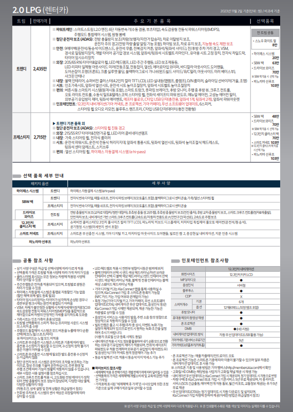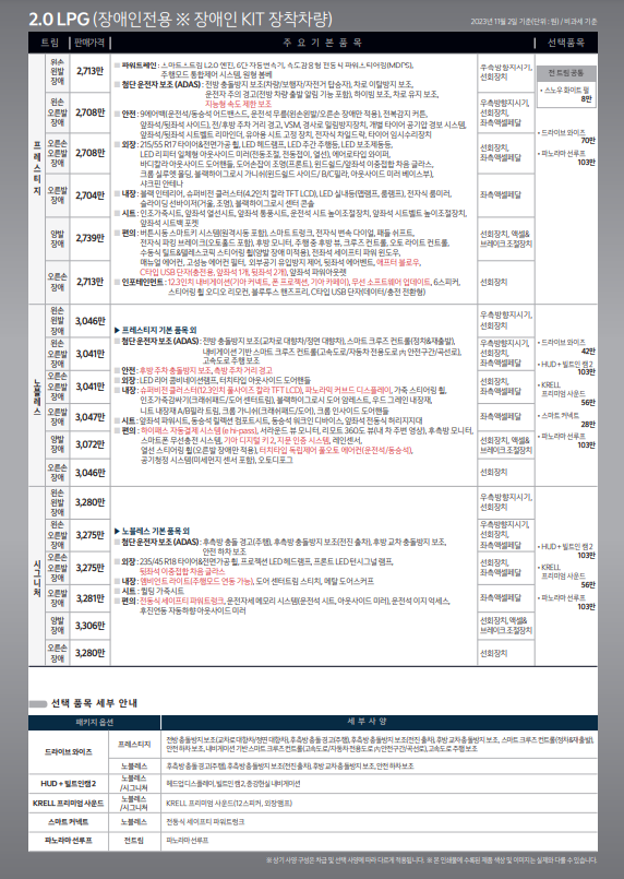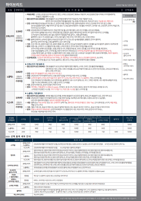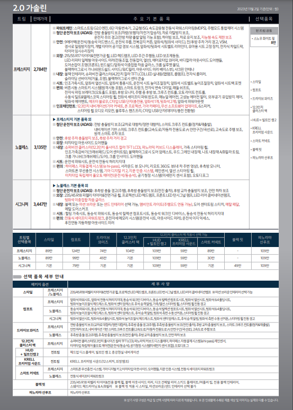 깡통 트림인 트렌디가 없어지고, 프레스티지의 옵션이 보강되어 100~300만원 가량 기존 모델보다 인상됐다.
