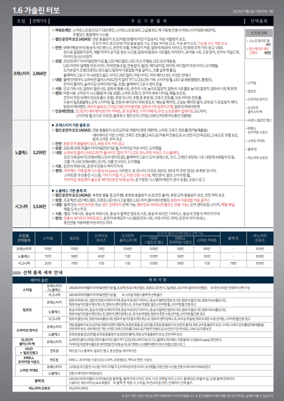 깡통 트림인 트렌디가 없어지고, 프레스티지의 옵션이 보강되어 100~300만원 가량 기존 모델보다 인상됐다.