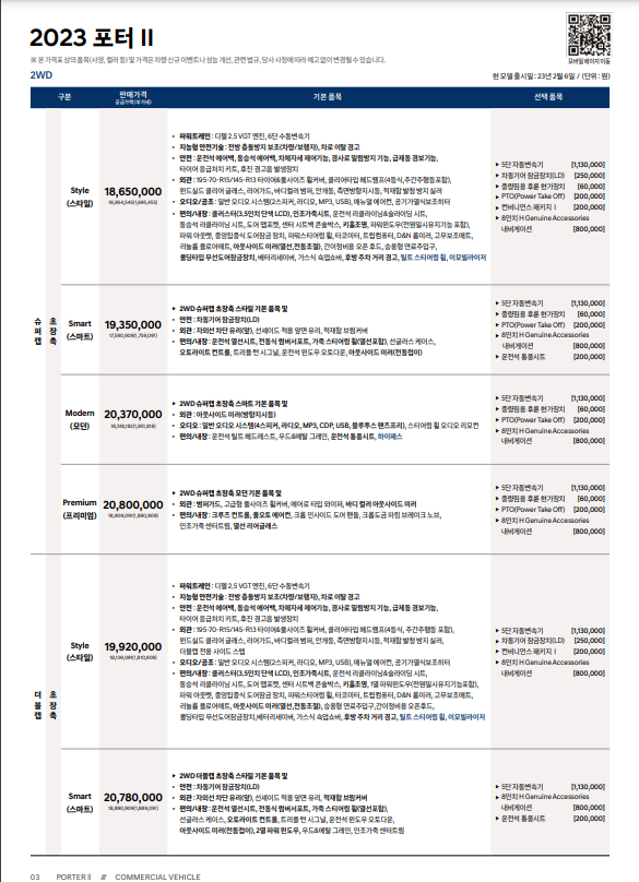 전트림에 차로 이탈 경고기능과 전방 추돌방지 보조기능이 기본 탑재되고, 버튼시동/스마트키, 오디오, 내비게이션이 포함된 10.25인치 디스플레이가 적용되어 상품성이 향상됐다.