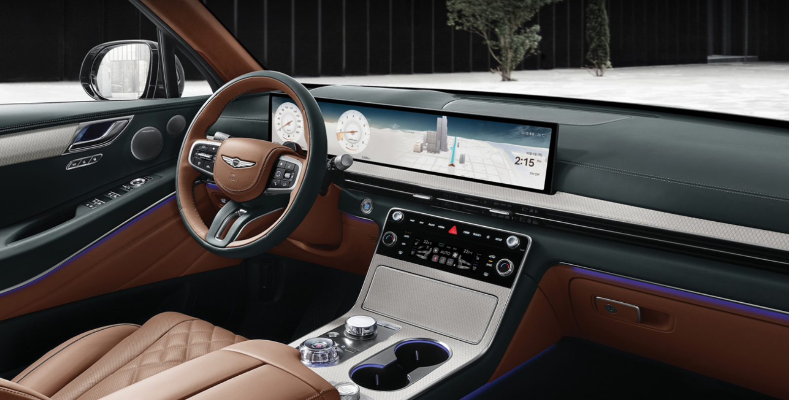 인테리어는 스트어링 휠이 신규 3스포크 스티어링 휠로 바뀌었고, 27인치 OLED 파노라믹 커브드 디스플레이가 계기판과 내비게이션을 하나로 연결한다.