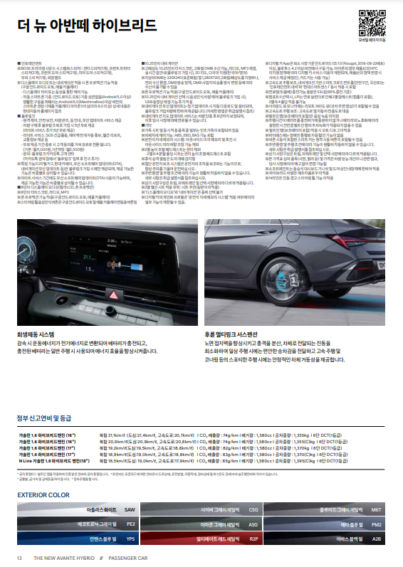 1.6L 카파 GDI 하이브리드에 D6KF1 계열 6단 DCT가 장착되었다. 일반 아반떼와 디자인 상으로 차이는 후면 범퍼와 가니쉬 부위를 제외하면 없다.