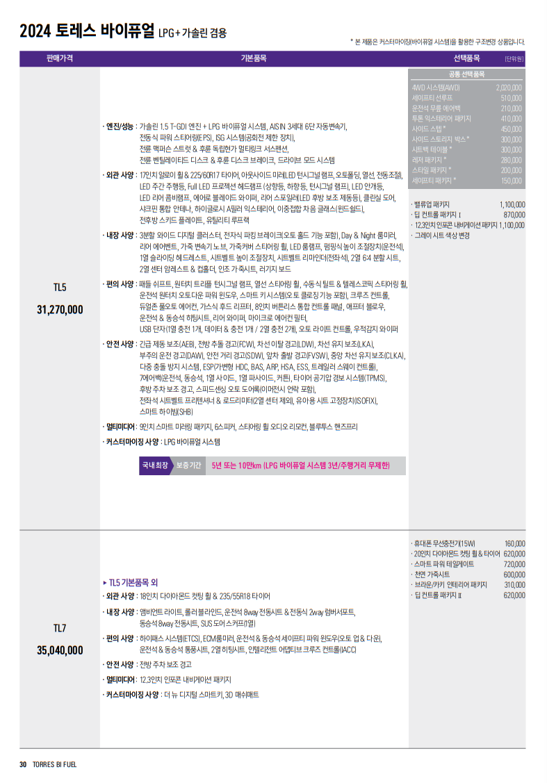 | 연료 | LPG, 가솔린 |