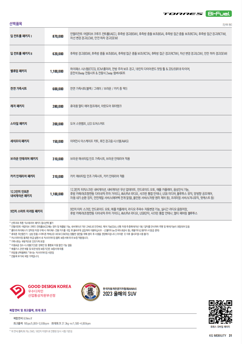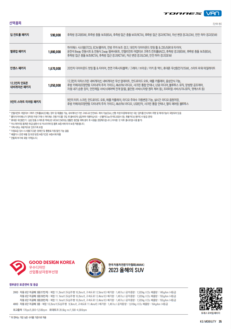 토레스의 연료탱크 용량은 50L로 동급에서 가장 작은편이다.
