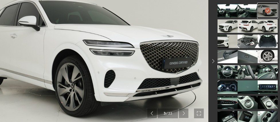 9대의 차량 중에서 21년 3월식 주행거리 56,171km의 GV70을 선택해 보겠습니다.