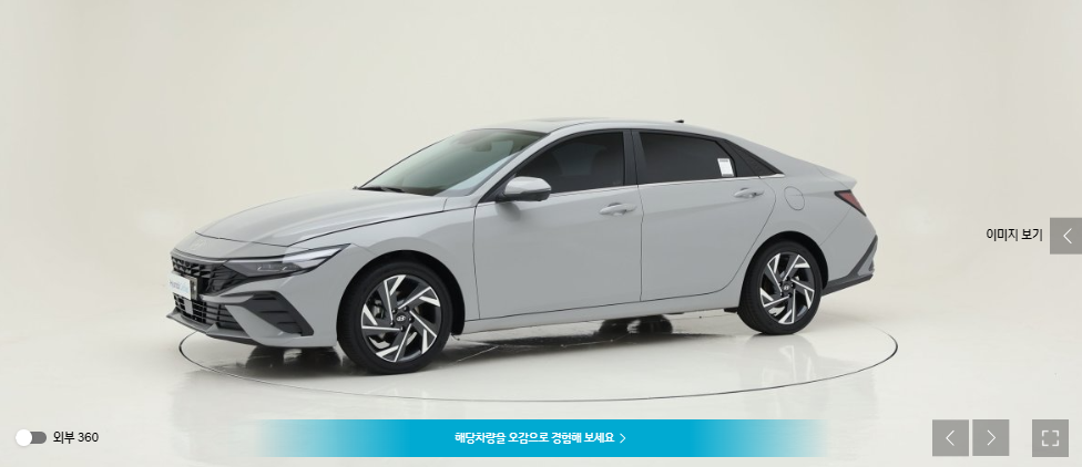 내/외부를 360도로 돌려가면서 확인할 수 있는 화면입니다. 마우스를 이용하여 내/외부를 자세히 돌려볼 수 있습니다. 모든 이미지의 퀄리티가 높으며 거의 같은 구도로 모든 차량을 찍기 때문에 비교해 보기가 용이합니다. 이미지의 퀄리티는 타 중고거래사이트와 비교해 높은 것 같습니다.