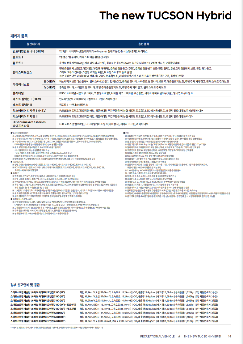 | 연비 | 복합 14.3~16.2km/ℓ (도심 14.4~17, 고속 14.1~15.2) |