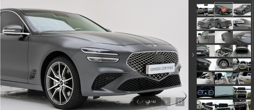 2017년 출시된 제네시스 G70의 페이스리프트는 2020년 10월에 출시됐습니다. 이 페이스리프트에서 투라인 헤드램프가 적용되어 제네시스의 아이덴티티에 편입됐습니다. G70은 사실 제네시스 브랜드에 있어서 골치 아픈 존재이기도 합니다. 브랜드의 대표 격인 G80과 비교한 판매량이 그 사실을 말해주는데 2023년도 11월의 판매량은 267대로 G80의 3,023대의 10분의 1에도 미치지 못합니다. 현대자동차에서 론칭한 중고차 거래 서비스인 현대인증중고차에서 제네시스 G70 2.5터보를 검색해 보고 다른 중고차 거래 서비스인 엔카에서 동일한 모델을 검색하여 가격비교까지 해보려 합니다.