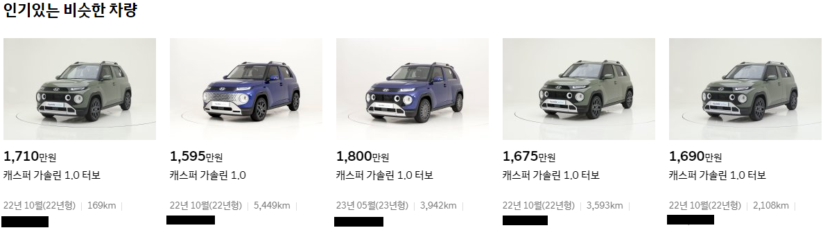 현대인증중고차 캐스퍼 중고차 VS 엔카 가격비교