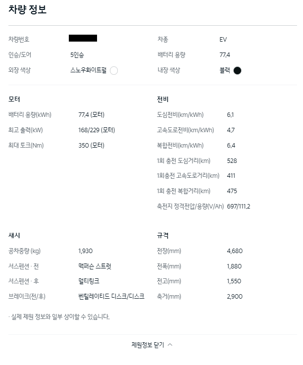 차량의 기본정보를 볼 수도 있습니다.