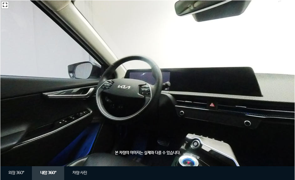 내/외부를 360도로 돌려가면서 확인할 수 있는 화면입니다. 마우스를 이용하여 내/외부를 자세히 돌려 볼 수 있습니다. 모든 이미지의 퀄리티가 매우 높고 각 이미지마다 거의 같은 구도로 찍기 때문에 비교하기가 좋습니다. 같은 구도의 사진을 올린다는 것은 구매자에게 매우 중요한 지점입니다.