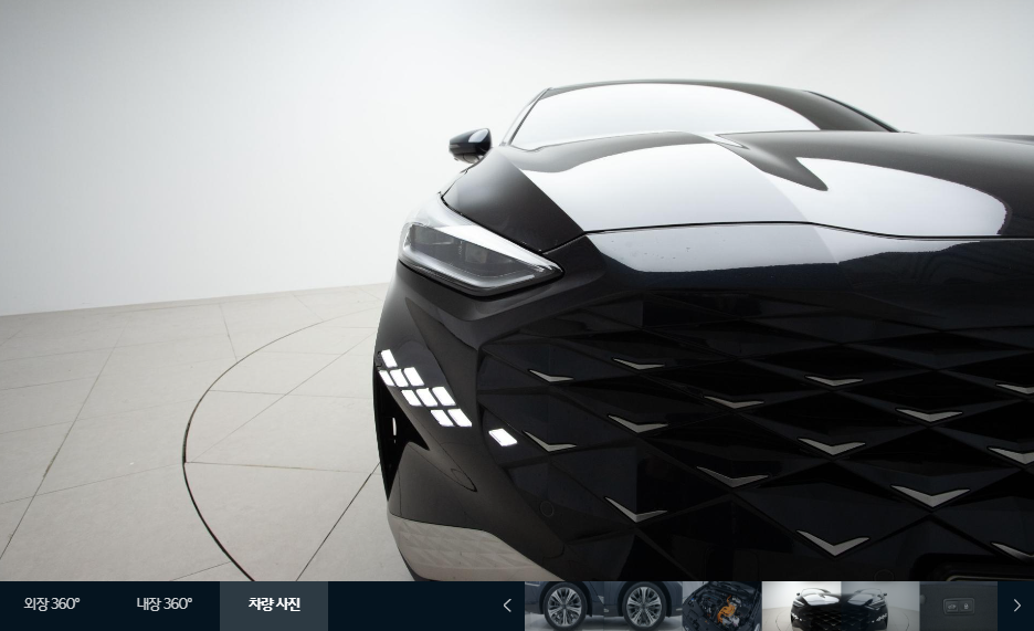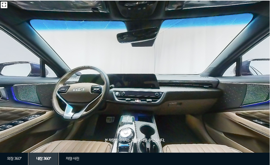 내/외부를 360도로 돌려가면서 확인할 수 있는 화면입니다. 마우스를 이용하여 내/외부를 자세히 돌려 볼 수 있습니다. 모든 이미지의 퀄리티가 매우 높고 각 이미지마다 거의 같은 구도로 찍기 때문에 비교하기가 좋습니다. 같은 구도의 사진을 올린다는 것은 구매자에게 매우 중요한 지점입니다.