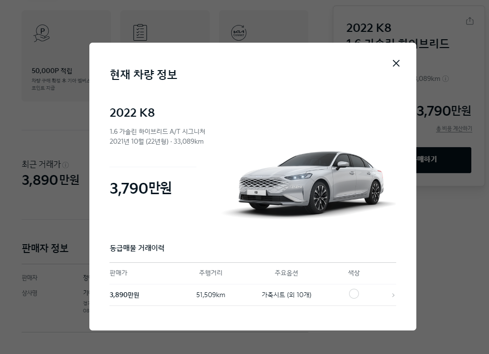 최근 거래된 차량에 대한 이력을 볼 수 있습니다.