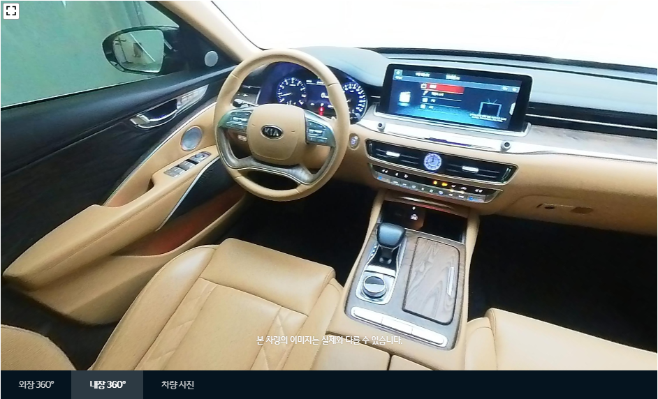 내/외부를 360도로 돌려가면서 확인할 수 있는 화면입니다. 마우스를 이용하여 내/외부를 자세히 돌려 볼 수 있습니다. 모든 이미지의 퀄리티가 매우 높고 각 이미지마다 거의 같은 구도로 찍기 때문에 비교하기가 좋습니다. 같은 구도의 사진을 올린다는 것은 구매자에게 매우 중요한 지점입니다.