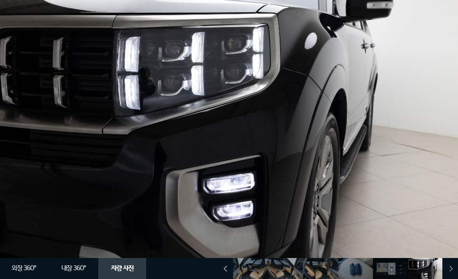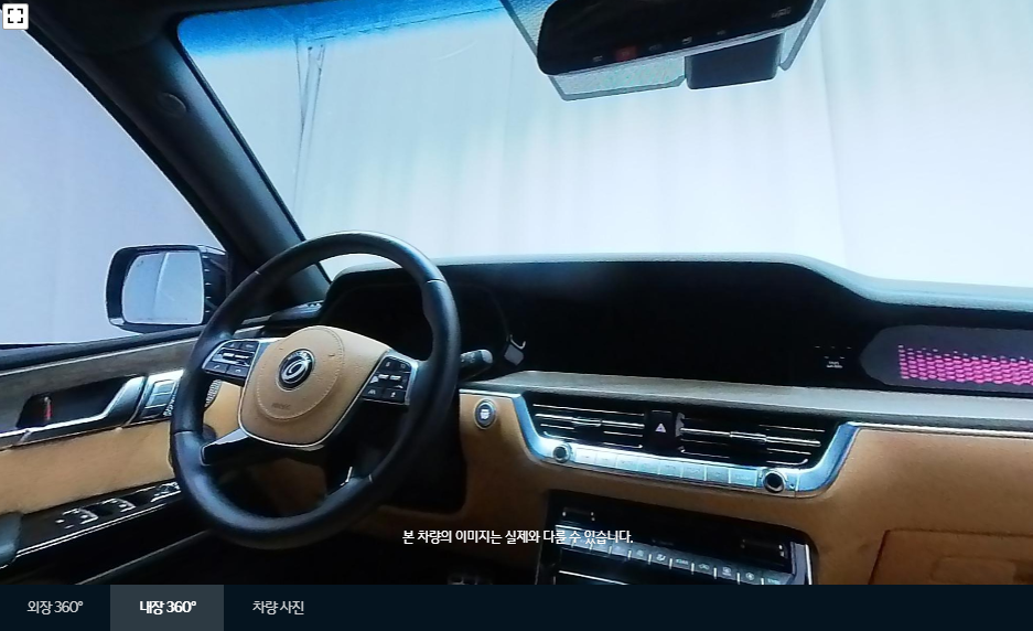 내/외부를 360도로 돌려가면서 확인할 수 있는 화면입니다. 마우스를 이용하여 내/외부를 자세히 돌려 볼 수 있습니다. 모든 이미지의 퀄리티가 매우 높고 각 이미지마다 거의 같은 구도로 찍기 때문에 비교하기가 좋습니다. 같은 구도의 사진을 올린다는 것은 구매자에게 매우 중요한 지점입니다.
