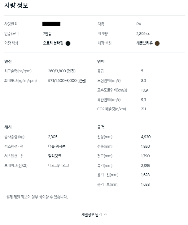 차량의 기본정보를 볼 수도 있습니다.