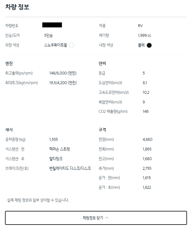 차량의 기본정보를 볼 수도 있습니다.