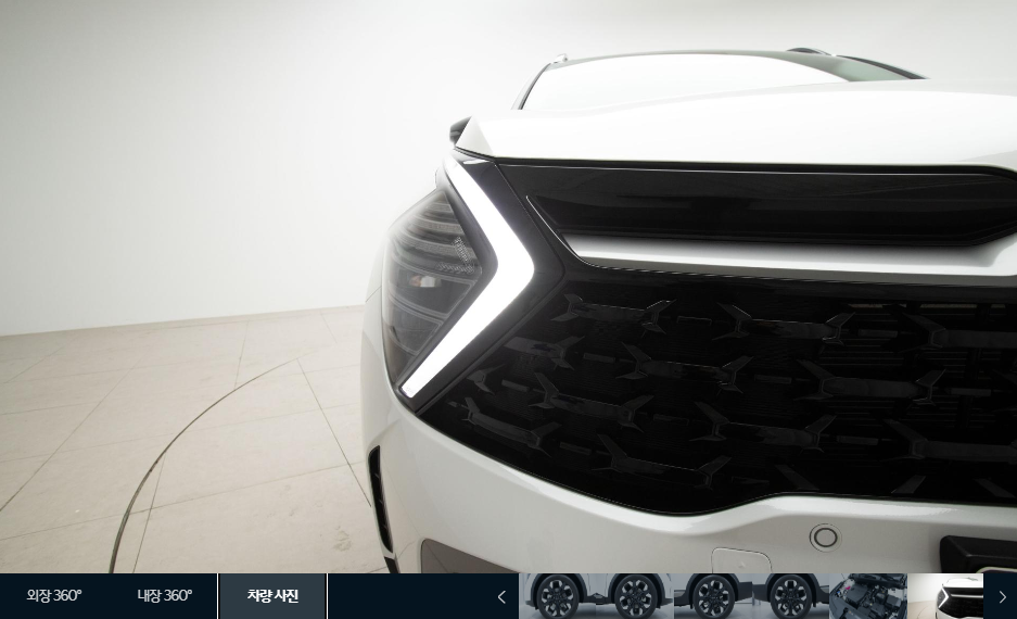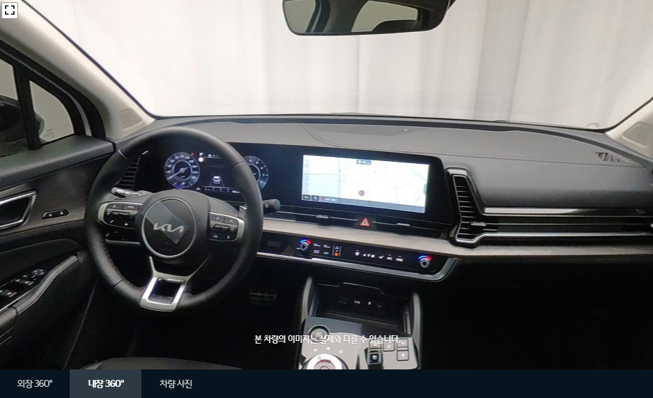 내/외부를 360도로 돌려가면서 확인할 수 있는 화면입니다. 마우스를 이용하여 내/외부를 자세히 돌려 볼 수 있습니다. 모든 이미지의 퀄리티가 매우 높고 각 이미지마다 거의 같은 구도로 찍기 때문에 비교하기가 좋습니다. 같은 구도의 사진을 올린다는 것은 구매자에게 매우 중요한 지점입니다.
