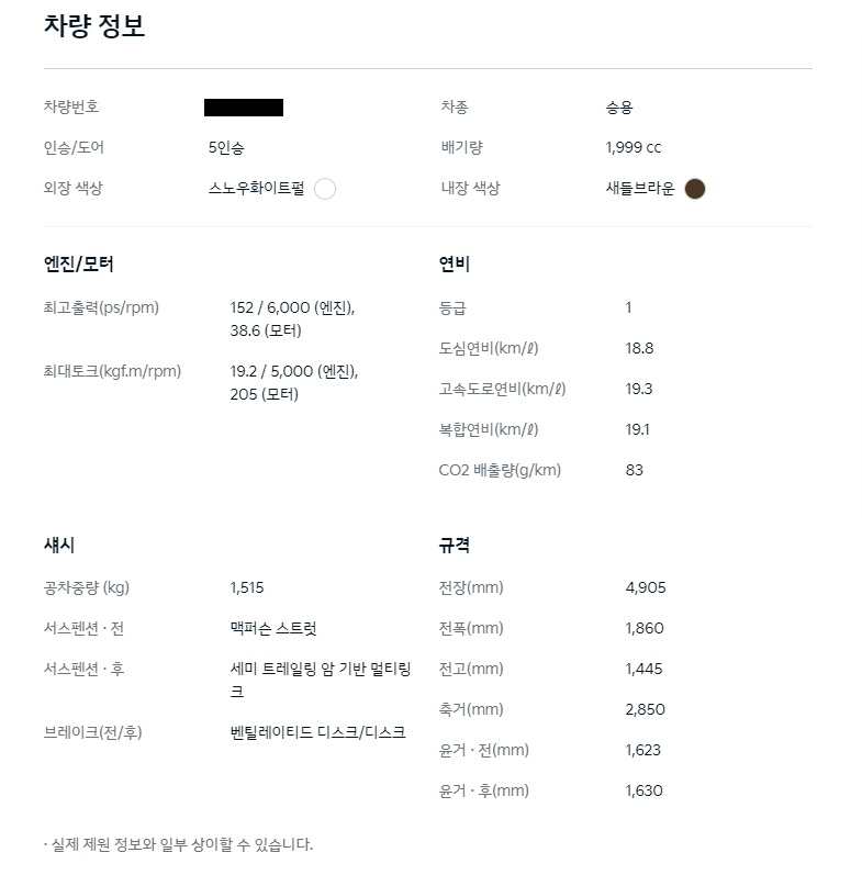 성능기록부와 보험항목, 압류/저당 정보가 나타나고, 옵션의 상세한 내용을 볼 수 있습니다. 이 차량에는 109개의 옵션이 적용되어 있습니다. 인증중고차가 아니면 이처럼 상세히 옵션을 확인하기는 힘들지도 모르겠습니다.
