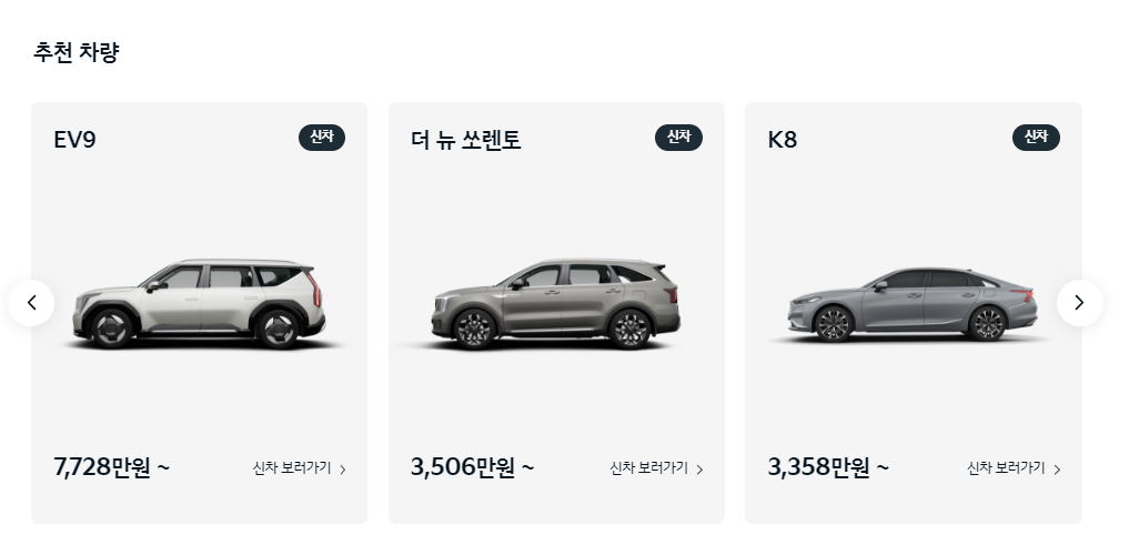 기아인증중고차에서 추천해주는 추천 차량도 볼 수 있습니다.