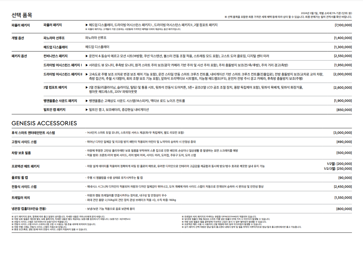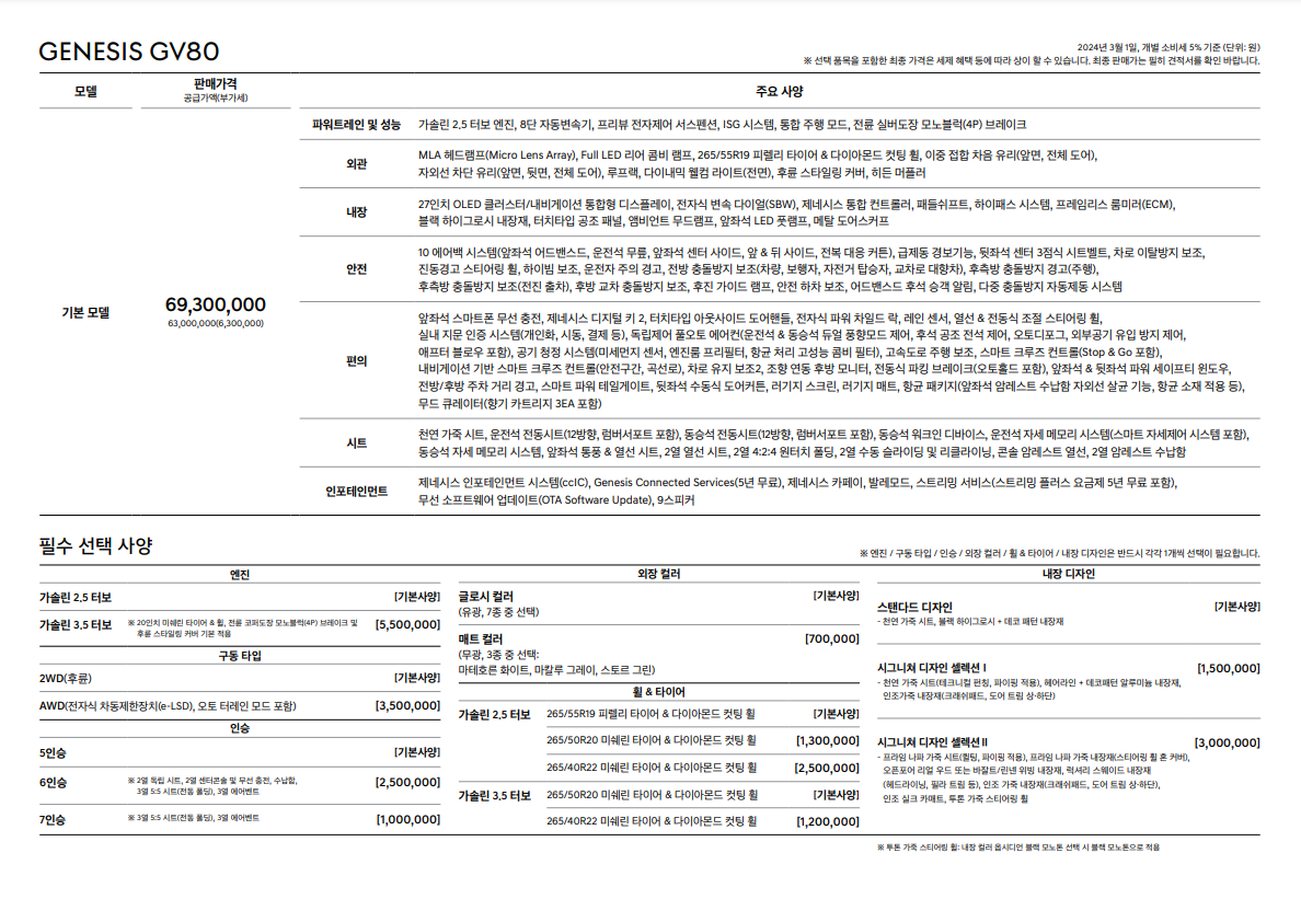 뉴 GV80의 주요옵션과 가격