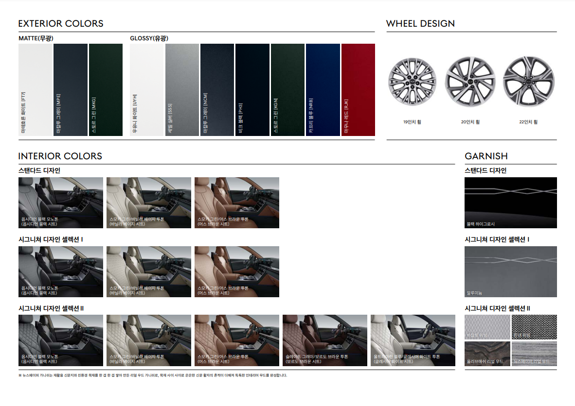 매트 컬러 (무광, 3종 중 선택: 마테호른 화이트, 마칼루 그레이, 스토르 그린) : + 700,000원