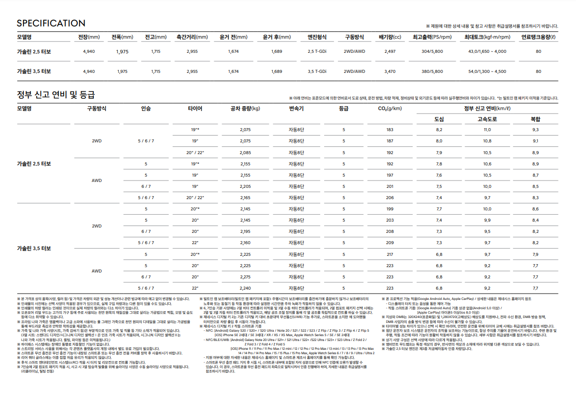 가솔린 2.5 터보 엔진, 8단 자동변속기, 프리뷰 전자제어 서스펜션, ISG 시스템, 통합 주행 모드, 전륜 실버도장 모노블럭(4P) 브레이크