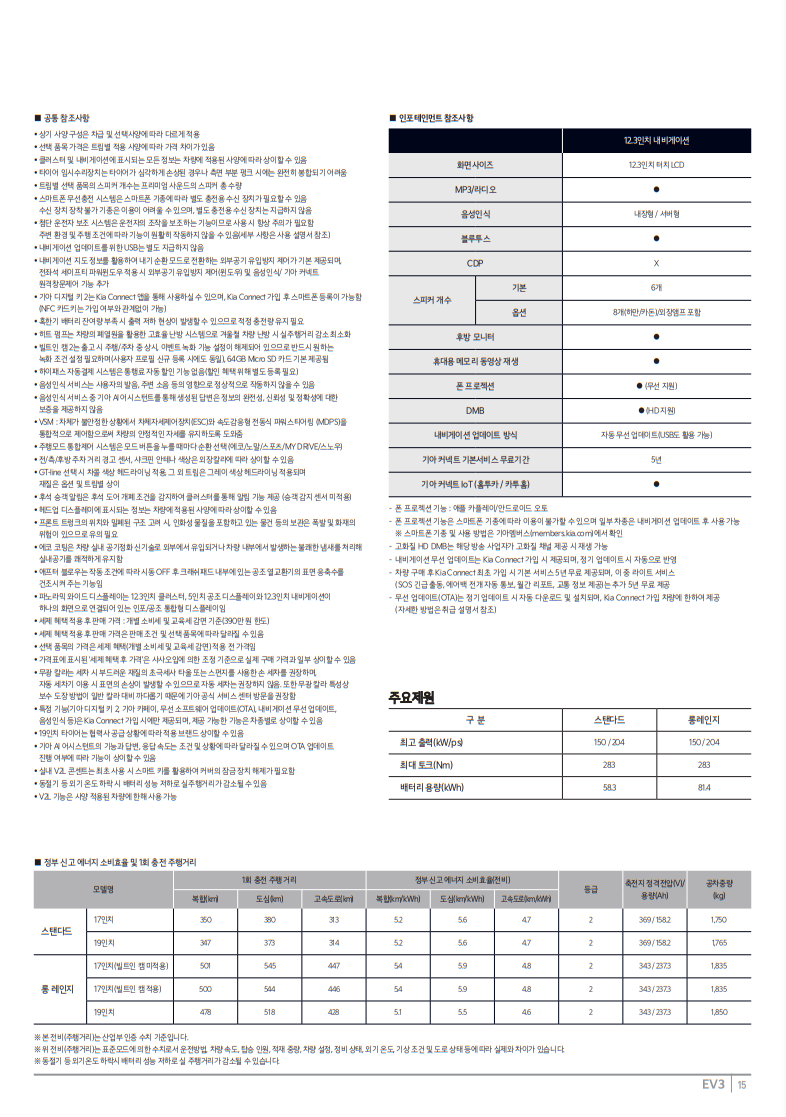 스탠다드 모델의 배터리 용량은 58.3kWh로 17인치 휠 적용 시 350km 주행이 가능합니다. 그리고 롱 레인지의 배터리 용량은 81.4kWh로 500km 주행이 가능합니다. 롱 레인지와 스탠다드는 모델의 가격 차이가 약 400만 원대로 예상보다 크지 않아 롱 레인지의 선택 비율이 높습니다.