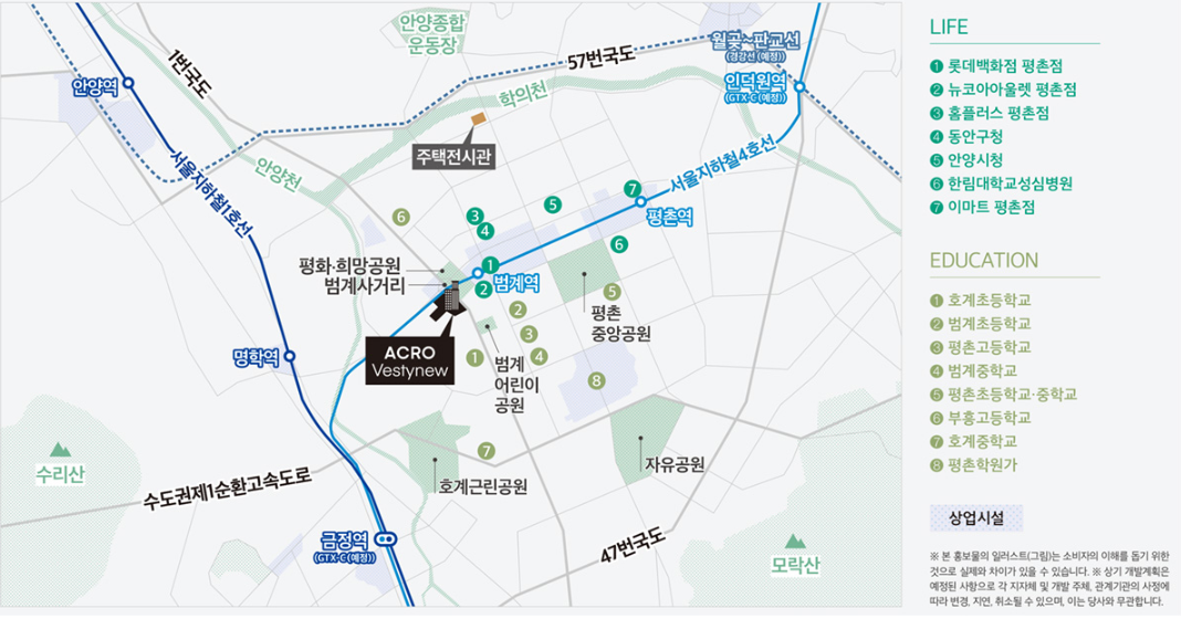 경기도 안양시 동안구 호계동에 위치하며, 1,011세대 중 391세대가 일반분양됩니다. 지하 3층부터 지상 37층까지 10개 동으로 이루어져 있고, 하이엔드 브랜드의 고부가가치 아파트로 10월에 분양될 예정입니다. 평촌 신도시에는 범계역과 평촌역이 있으며, 범계역 근처에 롯데백화점, 홈플러스 등 인프라를 갖추고 있습니다.