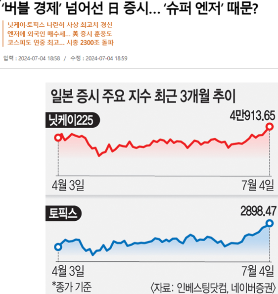 이러한 기업들의 실적 개선은 일본 증시를 버블 시대 이후 최고 수준으로 끌어올리는 데 기여했습니다. 2024년 5월, 닛케이 225 지수는 사상 최고치인 45,000엔을 돌파했습니다.