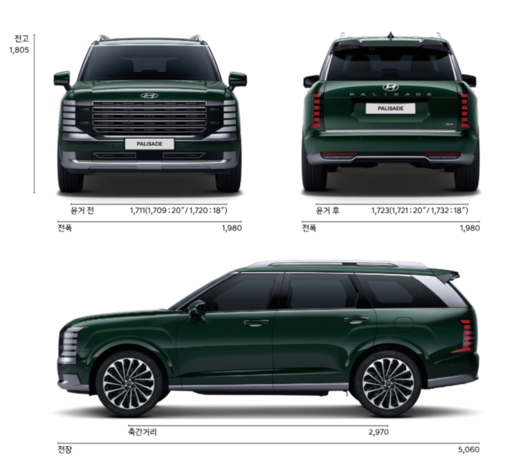 - 뒤 오버행: 1,155mm (이전 대비 25mm 증가)