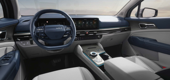 실내는 수평형 레이아웃을 채택하여 개방감을 높였습니다. 파노라믹 커브드 디스플레이의 적용으로 하이테크한 분위기를 연출하면서도 실용적인 공간 활용을 가능케 합니다. 2열 에어벤트의 설치로 뒷좌석 승객의 편의성도 고려했습니다.