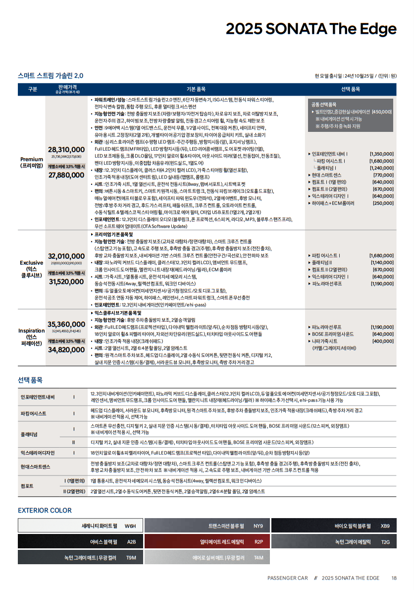 2025년형 쏘나타는 다양한 트림으로 출시되어 소비자의 선택폭을 넓혔습니다.