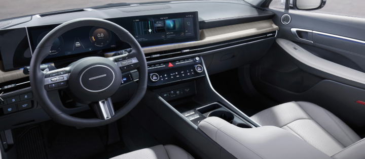 2025년형 쏘나타의 실내는 고급스러움과 첨단 기술의 조화를 이루고 있습니다.