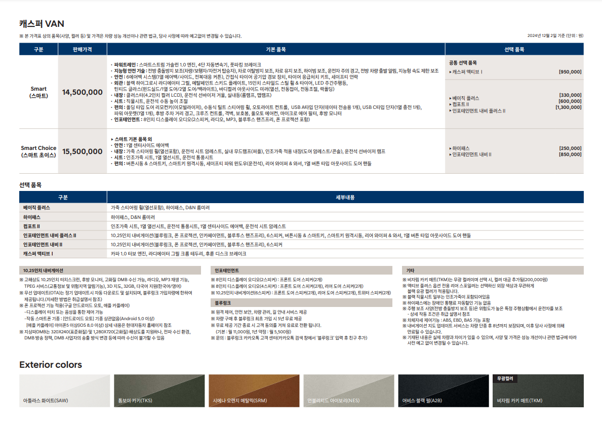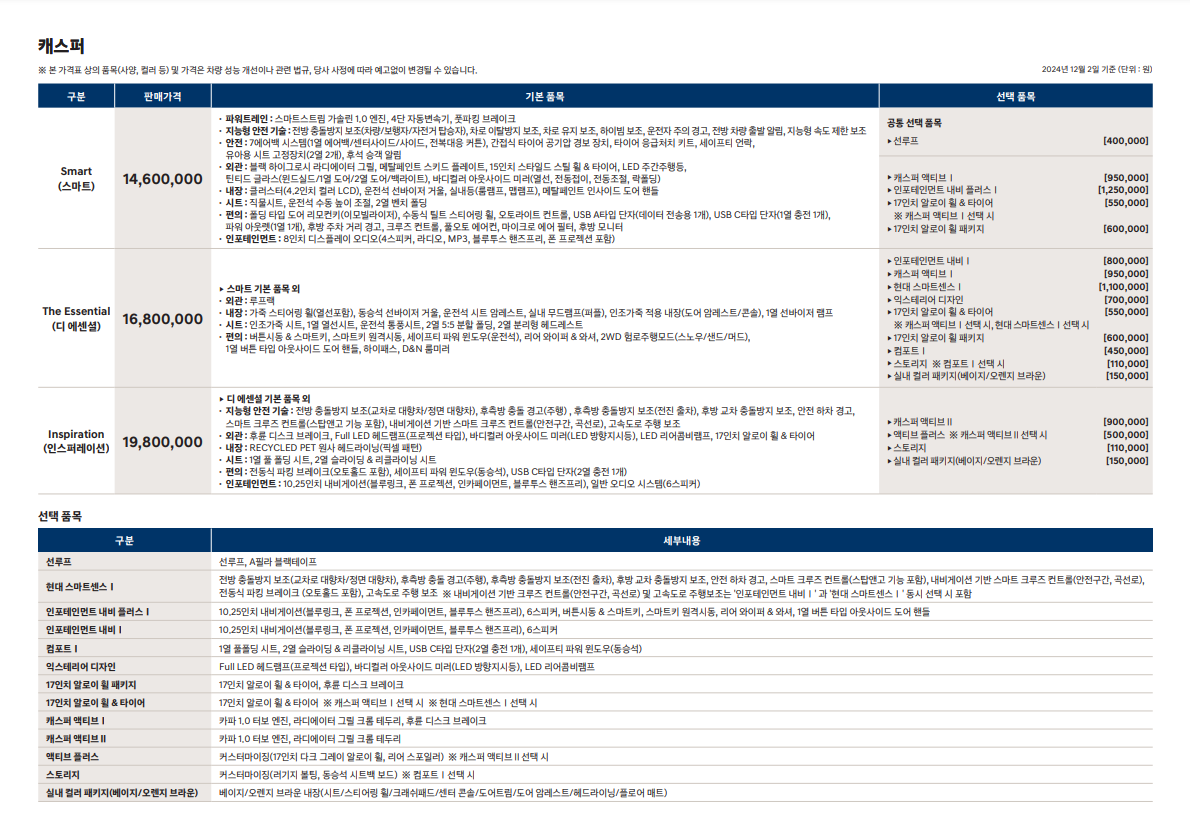 2025년형 캐스퍼는 다양한 트림과 옵션으로 소비자의 선택폭을 넓혔습니다.