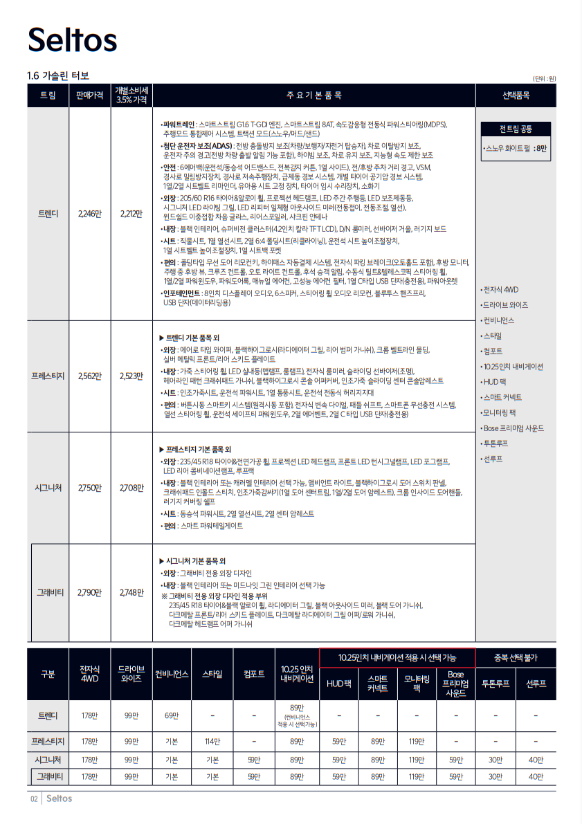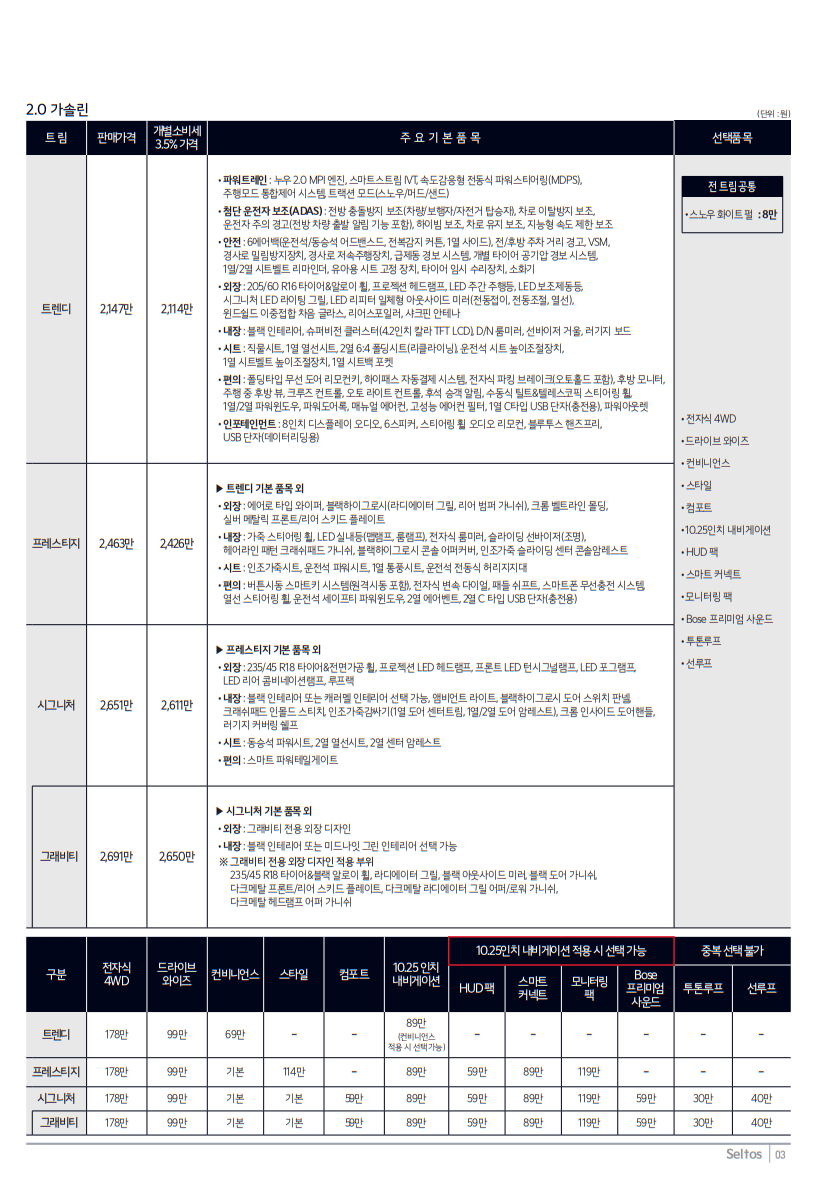 2025 셀토스는 다양한 트림과 합리적인 가격대로 소비자의 선택폭을 넓혔습니다.2.0 가솔린 모델