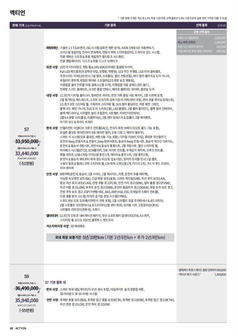 2025 액티언은 총 세 가지 트림으로 구성되며 가격대는 다음과 같습니다: