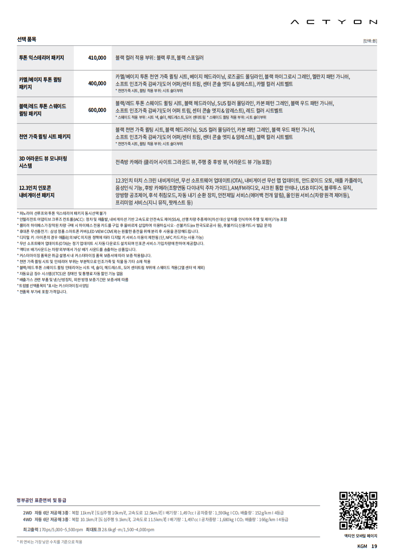 2025 액티언의 주요 제원은 다음과 같습니다: