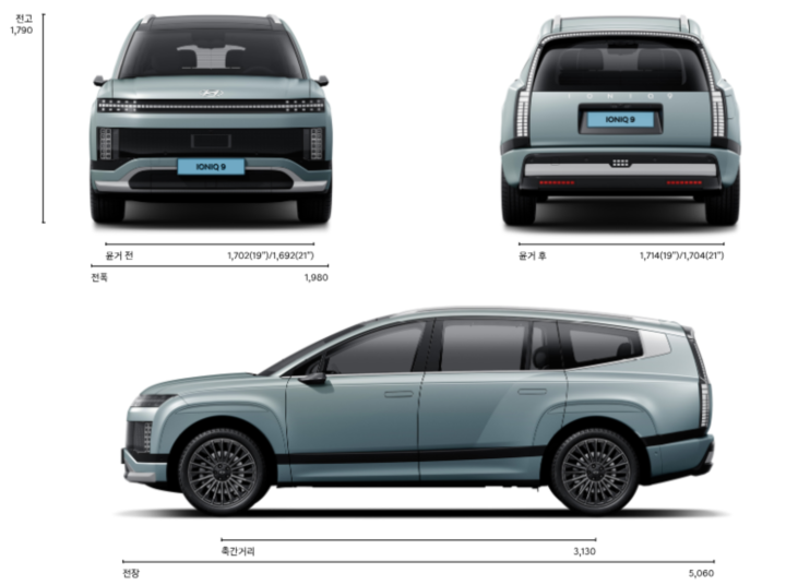아이오닉 9의 외형 치수는 다음과 같습니다: