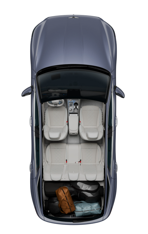 이러한 치수는 넉넉한 실내 공간을 제공합니다. 1열은 인체공학적 설계로 운전에 집중할 수 있는 환경을 조성하며, 2열 역시 성인이 편안하게 앉을 수 있는 충분한 무릎 공간과 헤드룸을 제공합니다.적재 공간은 기본 503리터로, 골프 캐디백 4개와 보스턴백 2개를 수용할 수 있습니다. 2열 시트를 접으면 더 넓은 공간을 확보할 수 있으며, 22리터 용량의 전면 프렁크도 추가적인 수납공간을 제공합니다.
