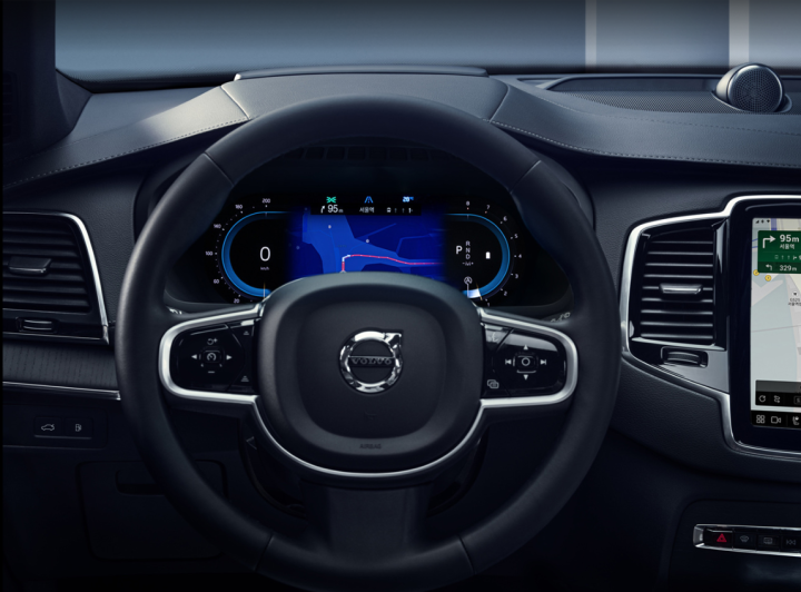 XC90의 실내는 고급스러움과 첨단 기술의 조화를 이루고 있습니다: