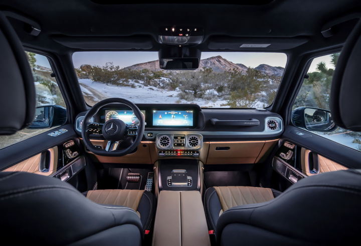 G-클래스는 전장 4,873mm, 전폭 1,984mm, 전고 1,966mm의 차체 크기를 가지고 있으며, 휠베이스는 2,890mm입니다. 이러한 넉넉한 크기는 실내 공간의 여유로움을 보장하며, 특히 뒷좌석 승객에게도 충분한 레그룸과 헤드룸을 제공합니다. 또한, 적재 공간도 충분하여 다양한 용도로 활용이 가능합니다.