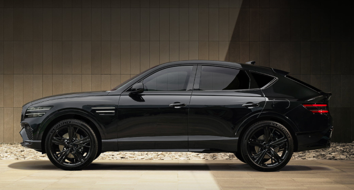 GV80 쿠페 블랙은 제네시스 브랜드의 두 번째 블랙 콘셉트 모델로, 차량의 모든 주요 요소가 블랙 컬러로 마감되어 고급스러움을 극대화했습니다. 외관은 크레스트 그릴과 쿼드 램프를 유지하면서도, 전면 그릴이 넓어지고 쿼드 램프는 얇아져 현대적이고 강렬한 인상을 줍니다. 후면 디자인은 테일램프와 리어 범퍼 디자인이 업데이트되어 차체의 균형감을 높였습니다. 실내는 고급스러운 가죽과 알루미늄 마감이 돋보이며, 스포티함과 고급스러움을 동시에 느낄 수 있는 레이아웃을 제공합니다. 특히, 블랙 컬러의 인테리어는 세련된 분위기를 자아내며, 운전자와 승객 모두에게 편안한 환경을 제공합니다.